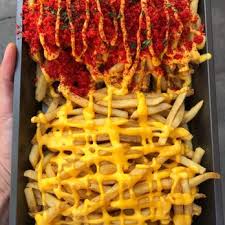 step three: Get a bowl and place your fries on the bottom. Pour cheese on top and place some hot Cheetos on top. Then you are ready to eat your delicious snack.