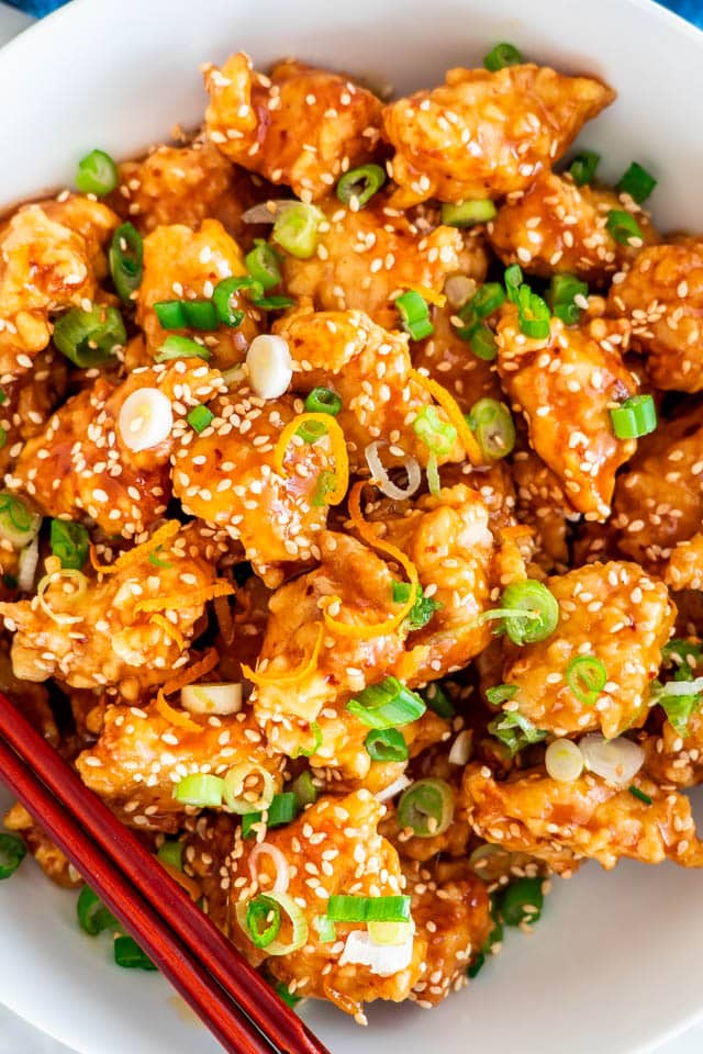 - Toss chicken with orange sauce. You may reserve some of the sauce to place on rice. Serve it with a sprinkling of green onion and orange zest, if so desired.