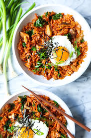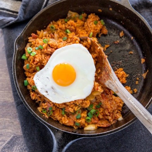 - Serve the Kimchi fried rice on a plate. Garnish with the sesame seeds, green onion and seaweed strips. (Garnish is all optional). Place the cooked egg on top. Enjoy!