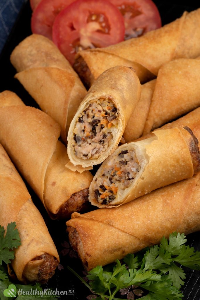 - Remove egg rolls when done and set it on a paper towel to absorb access oil. Let it cool for a few minutes.